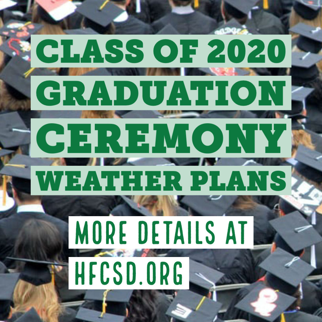 Live stream links: Each of the three ceremonies will be live-streamed. The links will also be posted on our district website, as well as our YouTube channel: https://www.youtube.com/c/HudsonFallsSchoolDistrict. We encourage you to share them with family and friends who are unable to attend the ceremony.