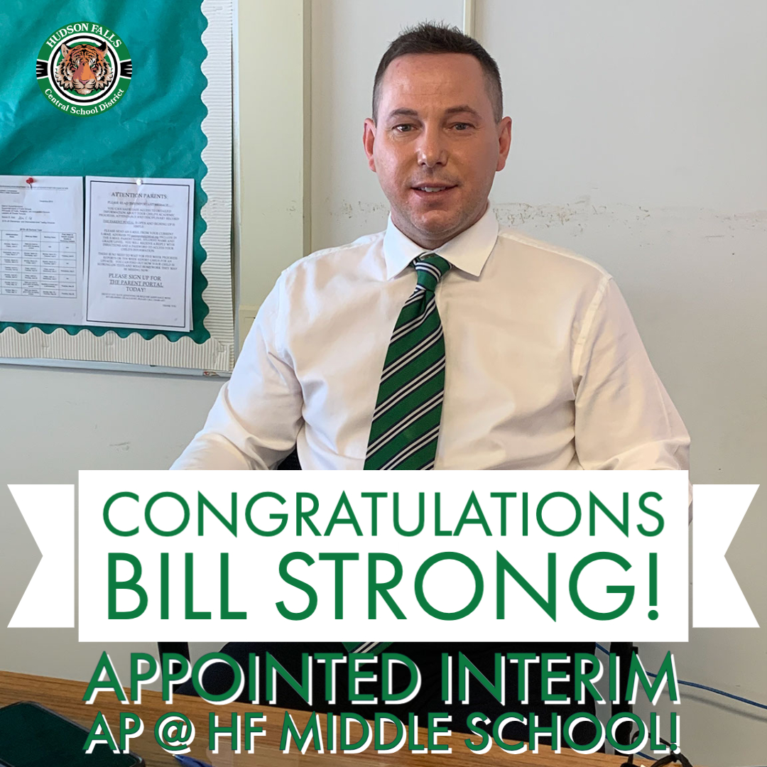 “I am so happy to have Bill Strong join our leadership team,” said Middle School Principal William Whitty. “I’ve worked with him throughout my entire time at Hudson Falls. I’ve found him to be a creative and inspiring educator. I know he will be a great partner to help bring our building to the next level for our students!”