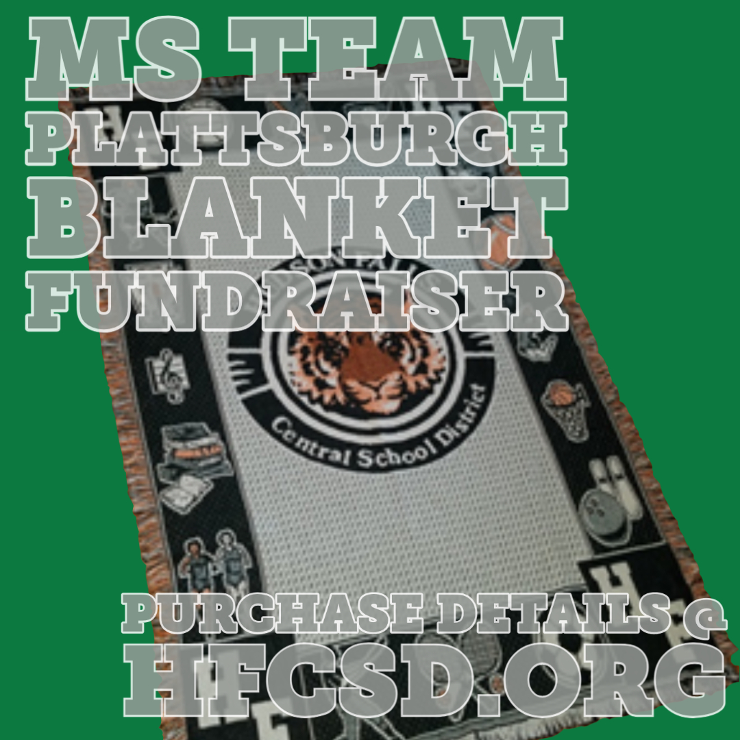 The sale is running from October 24-November 5, 2021. The blankets are woven with the Hudson Falls Tiger logo, as well as other designs. It measures 48 inches by 68 inches and costs $45.00 each. The money is payable on delivery.  Please make checks payable to HFMS Team Plattsburgh.