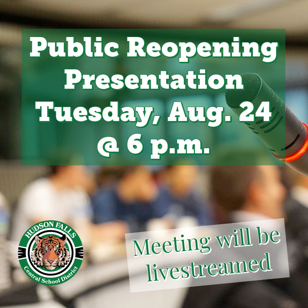 Hudson Falls Central School District is holding a public presentation on Tuesday, August 24th to discuss our plans for reopening school for the 2021-2022 school year.
