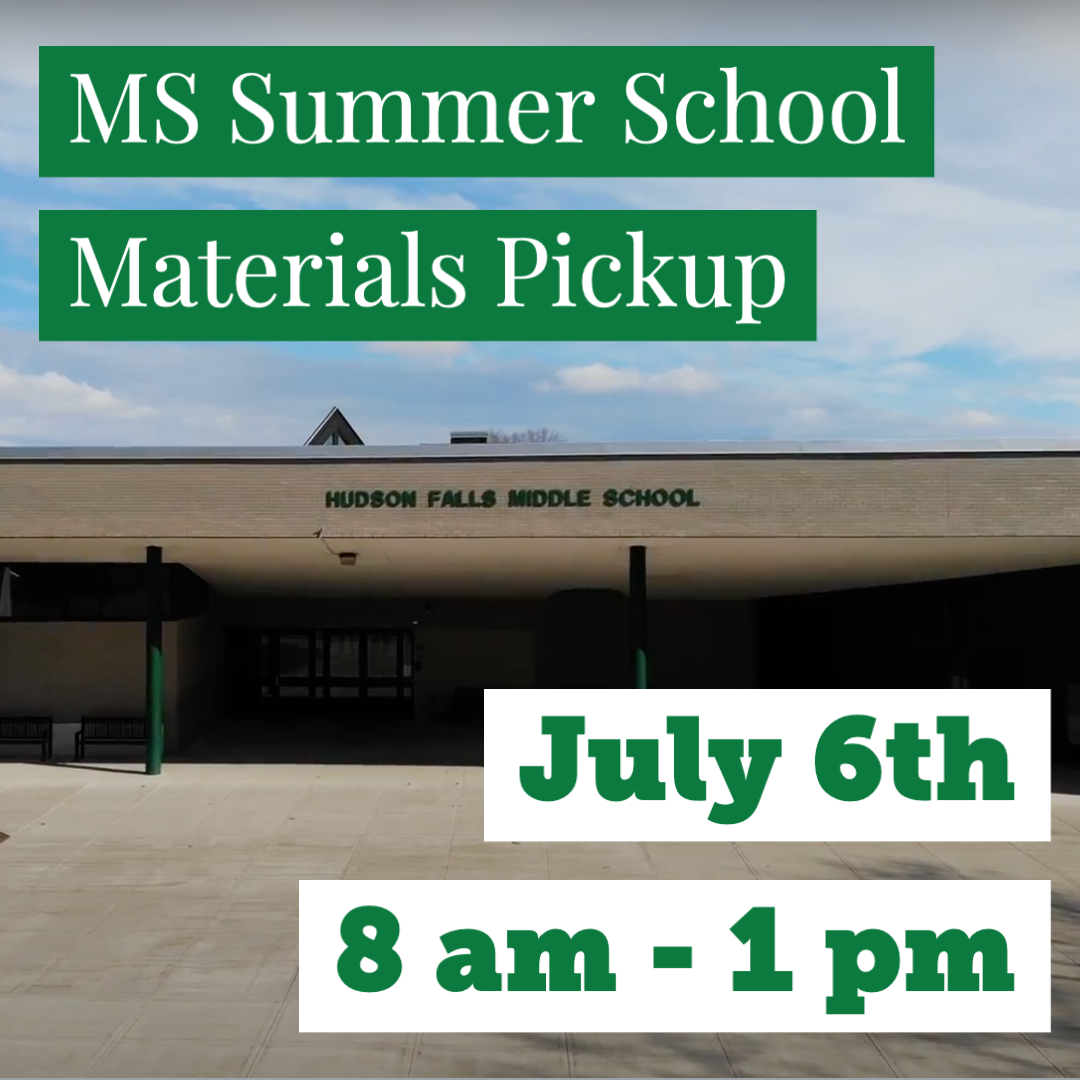 Chromebook and instructional material pickup for Seventh and Eighth Grade summer school students will be held on July 6, from 8 am to 1 pm in front of the Middle School.
